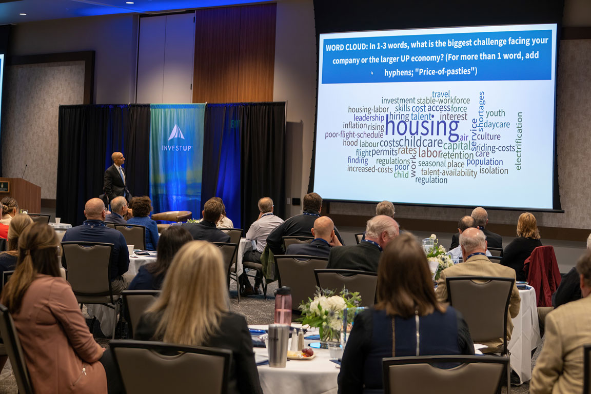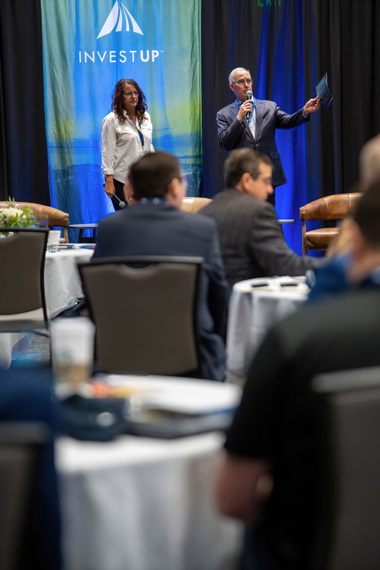 - InvestUP’s former board chair and president of Veridea Group, Bob Mahaney, and incoming board chair, Karyn Olsson, CEO of the Marketing Department Inc., led a panel discussion on where InvestUP should focus its regional economic development priorities. Suggestions included reliable and robust air service, attendant to alumni recruitment, and changing the regional narrative to focus on opportunities across the U.P.