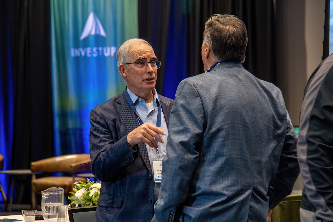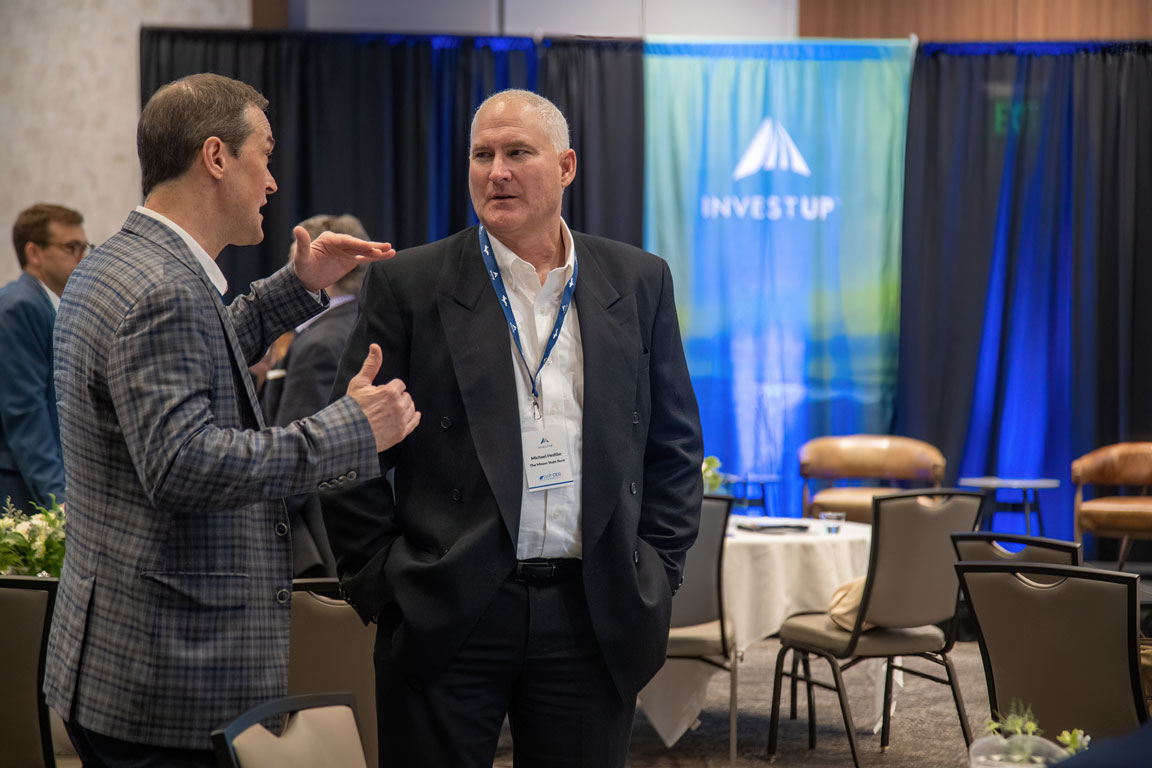 Bob Mahaney in a discussion with attendee of the 2023 InvestUP CEO Summit in Marquette, Michigan.