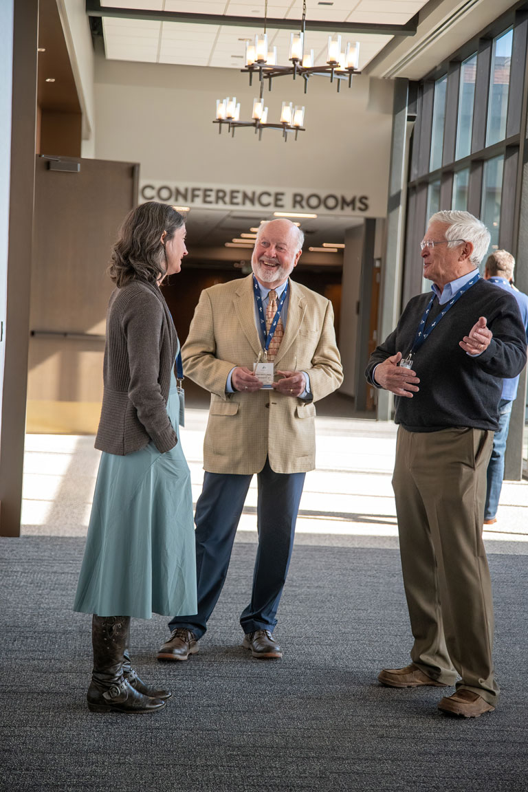 Richelle Winkler of USDA Economic Research Service along side, Rich Vanderveen of Mackinaw Power, and Mark Ehlert of 315 Ventures, Ltd, gathering at the 2023 InvestUP CEO Summit in Marquette, Michigan.