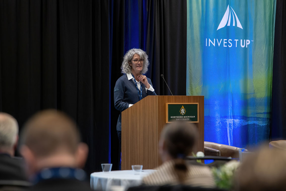 Debb Brunell of U.P Michigan Works at the 2023 InvestUP CEO Summit in Marquette, Michigan.