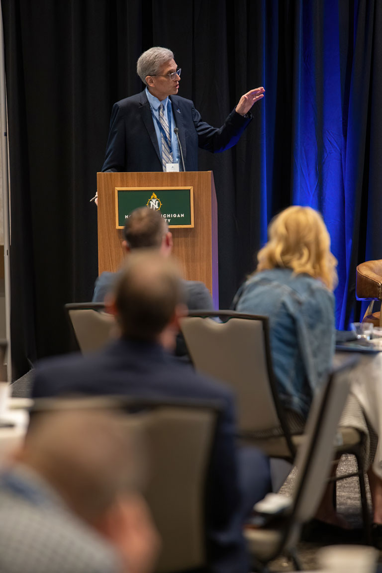 David Nyberg speaking with attendees at the 2023 InvestUP CEO Summit in Marquette, Michigan.