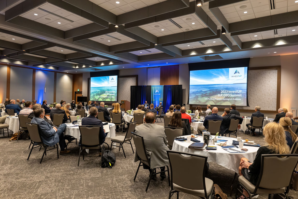 InvestUP held its second UP CEO Summit in Marquette on May 11, 2023. Executives and leaders from 100+ businesses came together with stakeholders to build new working relationships and participate in a day of action-driven discussions. Together, the attendees represented thirteen of the UP’s fifteen counties.