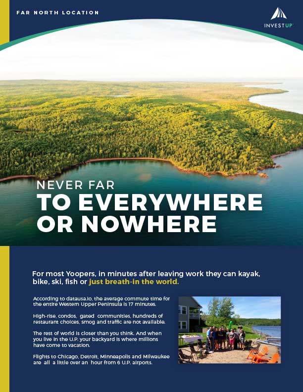 Yes, business is great here. But more important – living is great here. Download our Why Upper Peninsula overview for a quick look at the regions abundant benefits – from one-of-a-kind lifestyles to STEM business and innovation, to details on affordable cost of living. A great read!